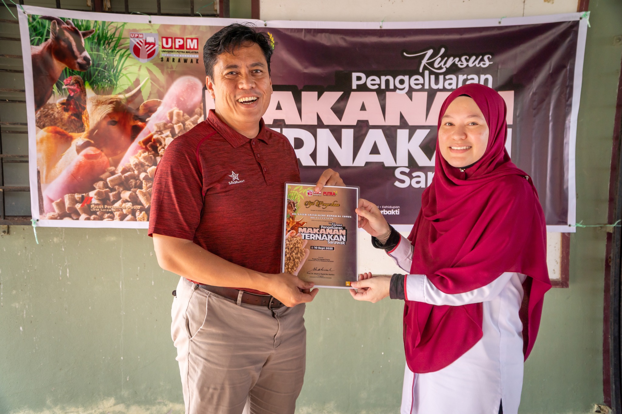 Pada 10 September 2025 (Rabu), Pusat Pertanian Putra, Universiti Putra Malaysia Sarawak (PPP, UPMS) Bintulu telah menganjurkan Kursus Pengeluaran Makanan Ternakan dengan objektif memperkasa pengetahuan dan kemahiran peserta daripada kalangan penanam, syarikat swasta serta agensi kerajaan.