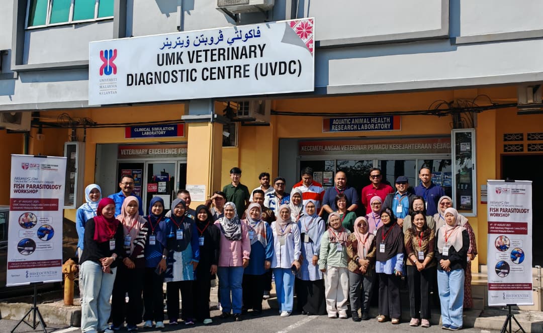 The workshop was organized by the Department of Animal Science and Fisheries, Faculty of Agriculture and Forestry, Universiti Putra Malaysia Sarawak (UPMS), under the leadership of Program Director, Dr. Nora Faten Afifah binti Mohamad. Strong commitment was also provided by Universiti Malaysia Terengganu (UMT) and the Faculty of Veterinary Medicine, Universiti Malaysia Kelantan (UMK), who generously contributed technical support, expertise, logistics, and facility resources. This strategic collaboration allowed the workshop, originally planned at UPMS, to be moved to the UMK Veterinary Diagnostic Centre (UVDC) to meet the initial requests of the participants. This demonstrates the flexibility and dedication of the organizers in ensuring accessibility for all stakeholders.