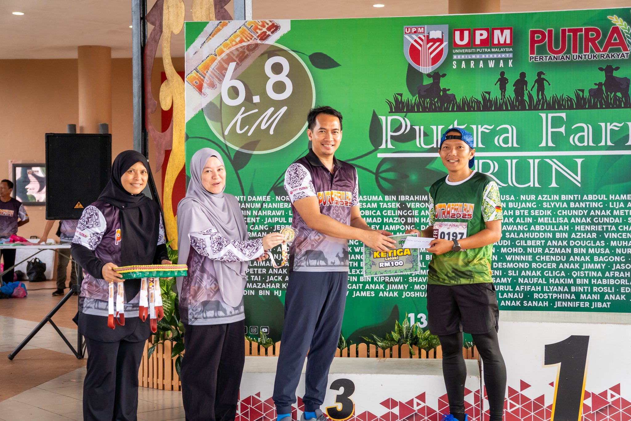 BINTULU, 13 Sept 2025 – Pusat Pertanian Putra, Universiti Putra Malaysia Sarawak (UPMS) telah menganjurkan Program Putra Farm Run 2025 bertempat di Dewan Sri Kenyalang dengan penyertaan seramai 150 peserta melibatkan pelajar, staf universiti, masyarakat setempat serta peserta luar dari Sibu, Miri, Kuching dan warga Indonesia yang bekerja di Bintulu.