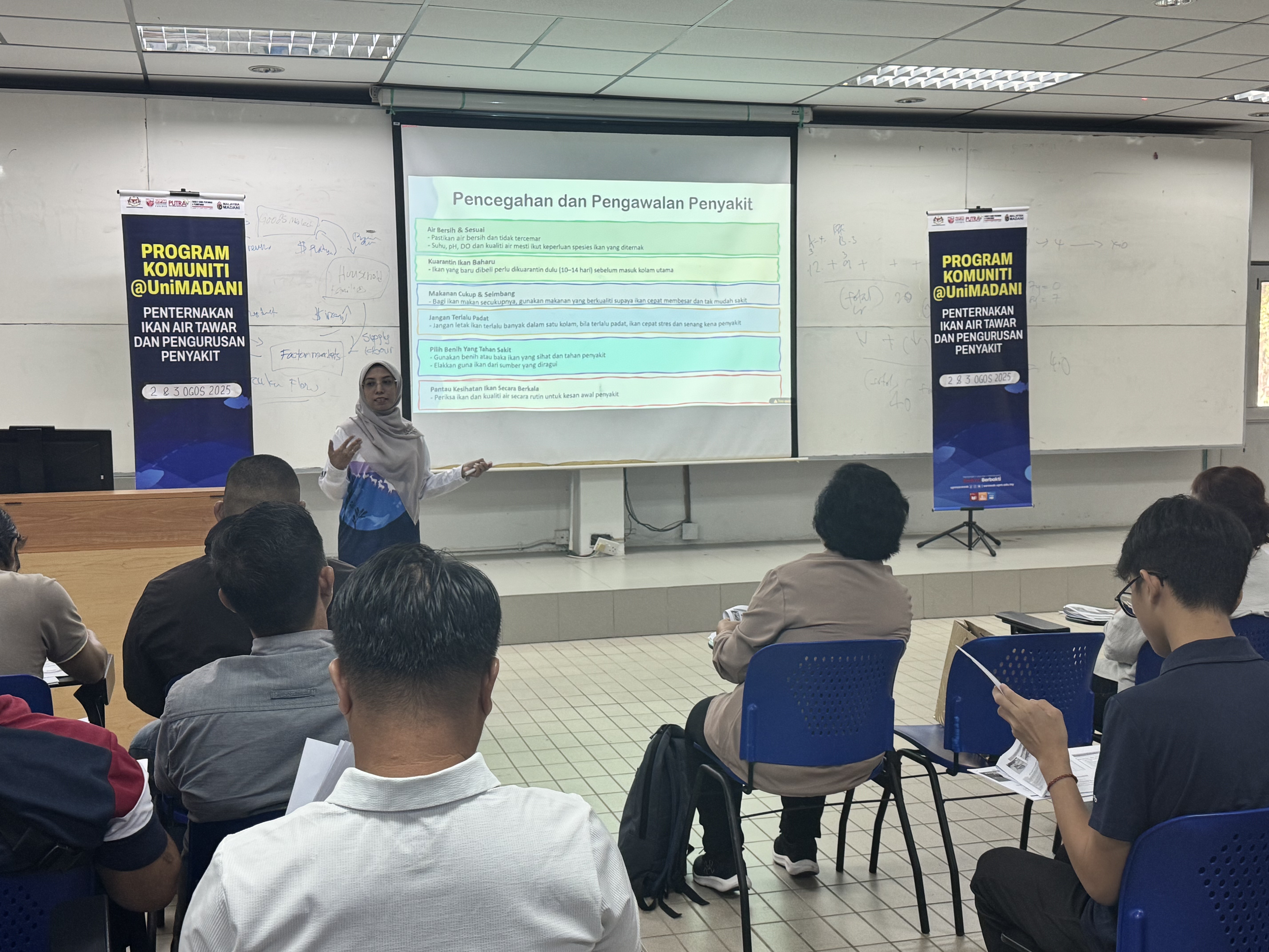 Projek yang diketuai oleh Dr. Wan Zabidii Wan Morni ini merupakan program berterusan yang bermula dengan sesi pemindahan ilmu selama dua hari, iaitu pada 2 hingga 3 Ogos 2025. Fasa pertama projek ini memberi tumpuan kepada pendedahan teori dan praktikal berkaitan asas penternakan ikan air tawar.