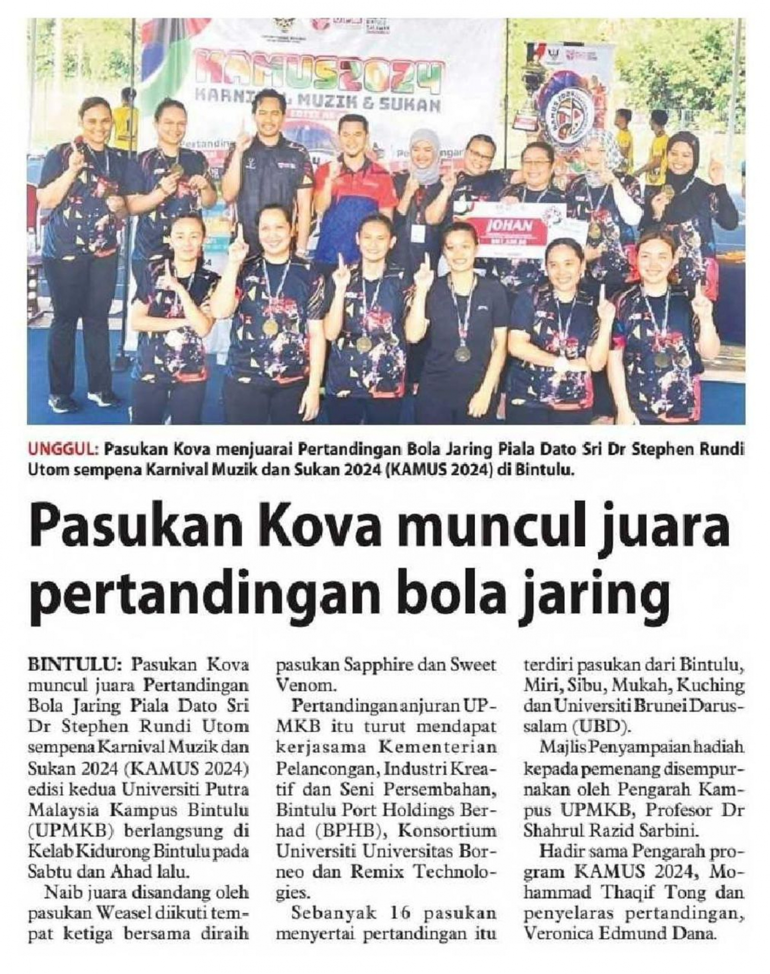 Pasukan Kova Muncul Juara Pertandingan Bola Jaring | UNIVERSITI PUTRA MALAYSIA SARAWAK